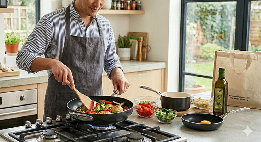 環境にも、健康にもやさしいセラミックフライパン「グリーンパン」。
