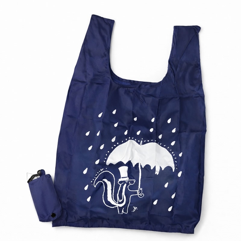 ポケッタブルなエコバッグに、オリジナルイラスト入り