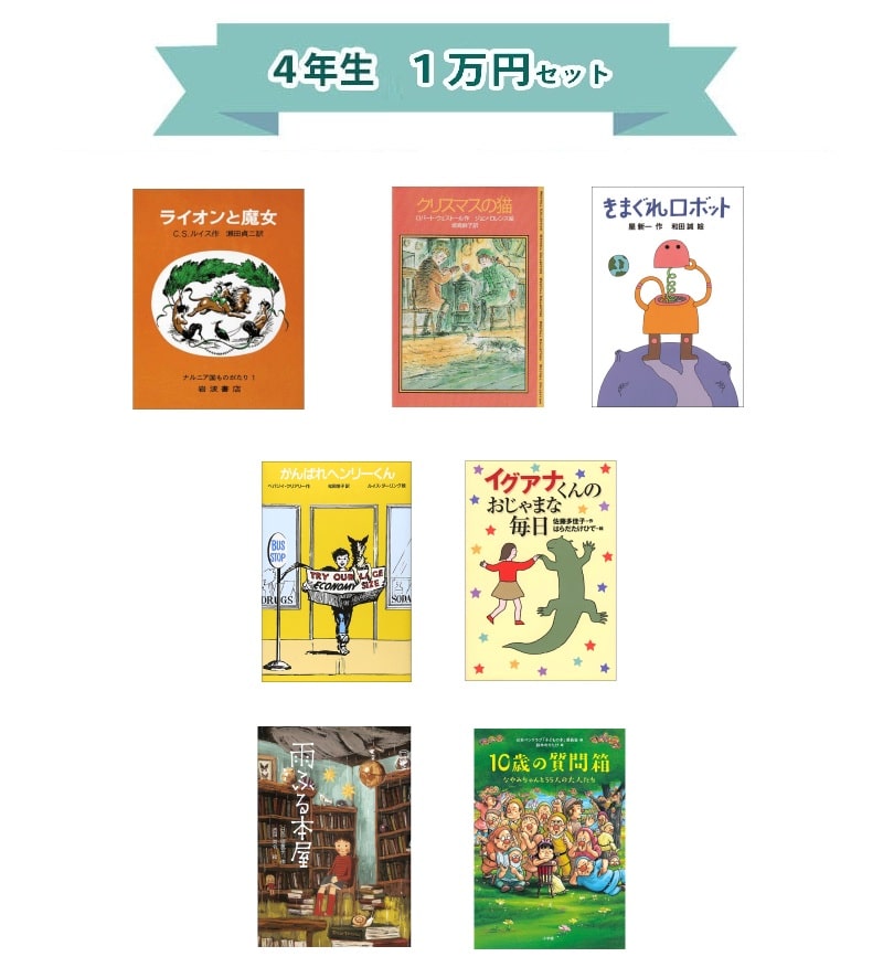 4年生さん向け[ブッククラブ・Kコース]でとくに好評の本を厳選して、1万円セットにしました。 *取り寄せ後に出版社の諸事情により、セットの一部が差し替えや価格改定となる場合がございます。