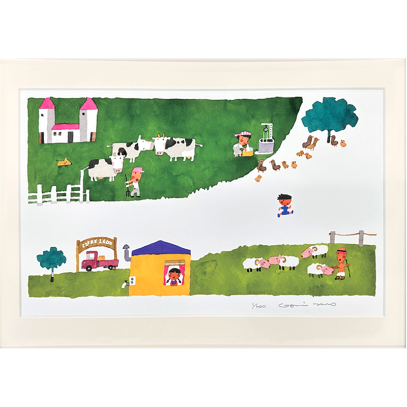 村のなかをかけぬける【五味太郎プリマグラフィ版画】