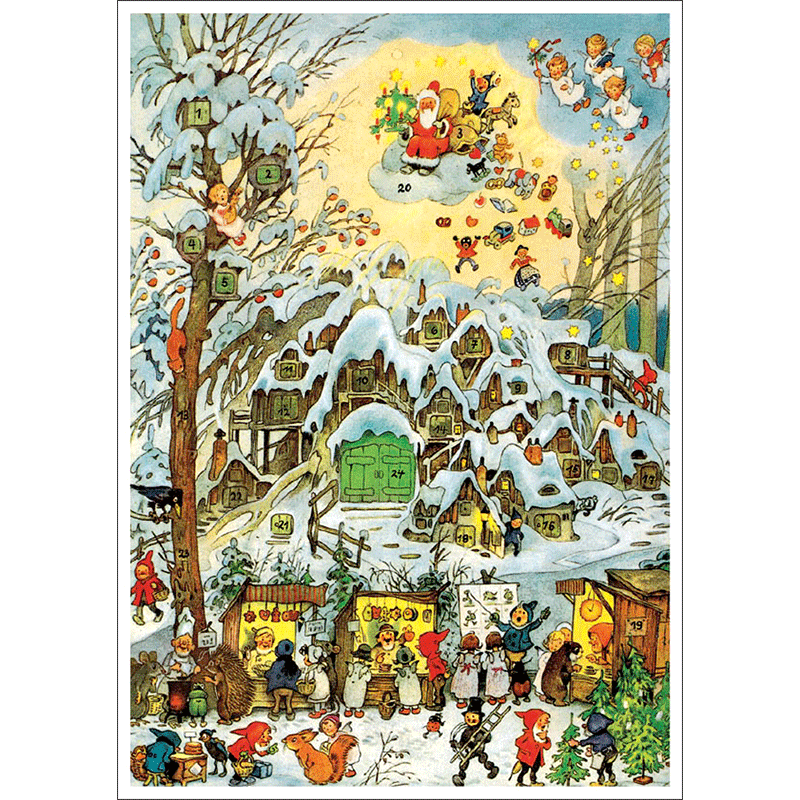 12月1日からクリスマスイブ(12月24日)まで、一日1枚その日の数字が書かれた窓(12月1日なら「1」、5日なら「5」の窓)を開けていきます。 数字の場所はランダムなので、イラストを見ながら探す楽しみもありますよ。