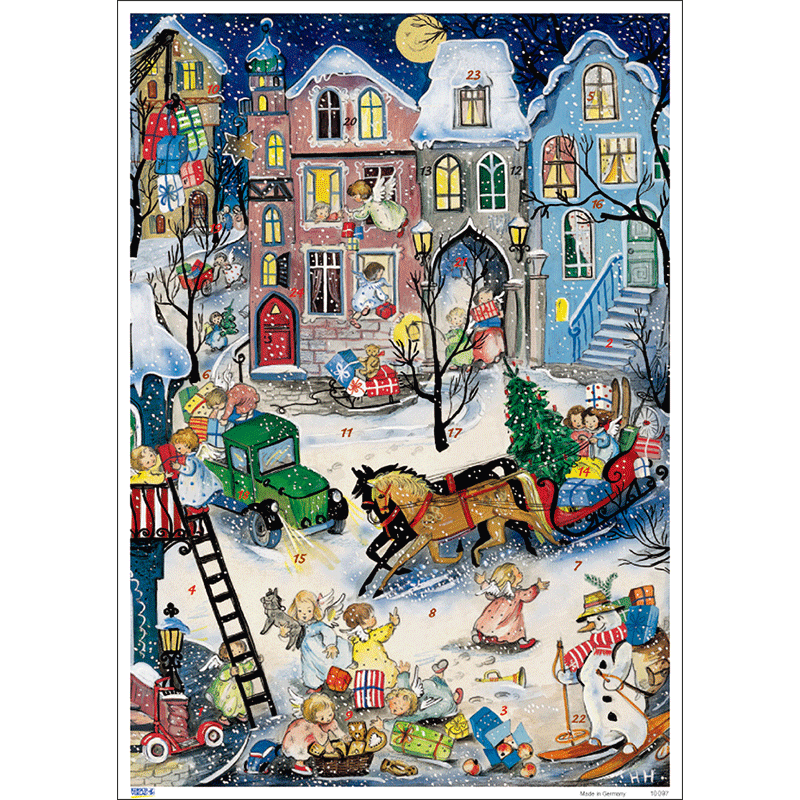 12月1日からクリスマスイブ(12月24日)まで、一日1枚その日の数字が書かれた窓(12月1日なら「1」、5日なら「5」の窓)を開けていきます。 数字の場所はランダムなので、イラストを見ながら探す楽しみもありますよ。