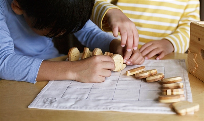 お野菜の形をしたコマは、白い色味のヒノキと黒い色味のサクラを合わせて、両面を使えるようになっています。また、セットの麻マットには4×4のマス目がついていますので、オセロゲームの入門編にぴったり! 「覚えるのは1分、極めるのは一生」かかるといわれているオセロゲームは、頭脳をフル活用する遊びです。集中力、思考力、直感力が高まりますので、ぜひ幼児期からチャレンジさせてあげてください。 最初は「同じ色で挟んだらひっくり返る」ということから教えてあげると、理解がスムーズですよ。