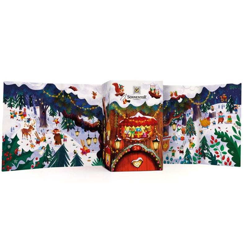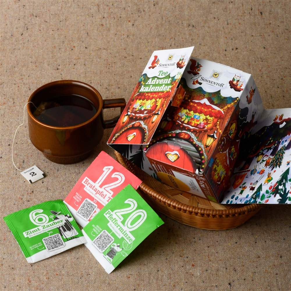 今年はどんなイラストかなと、毎年たのしみにしています。開くとワイドなクリスマスカードのような特製パッケージも素敵で、ハーブティー24種入りといろんなお茶がたのしめるのもお得感あり! この時季のプチギフトとして、どなたにも喜ばれます。