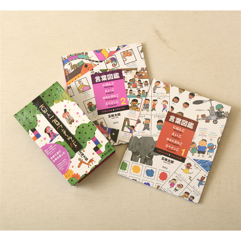デビューから半世紀以上、五味太郎さんの絵本はさまざまな言語で翻訳され、愛されています。 五味さんならではのセンス&ユニークなことばあそび、いっしょにたのしみませんか。 『言葉図鑑』は「動き」や「様子」を描いたイラストを4か国語で紹介。 『百人一首ワンダーランド』は、すべての札のイラストが書き下ろしで、歌が詠まれた時代の風景を百首とともに描いた「百人一首絵巻」や、一首ごとに書き下ろした五味さんのエッセイも。