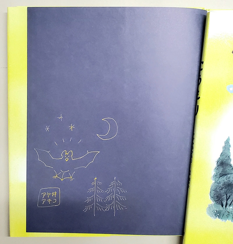 羽ばたきながら空を飛ぶことができる唯一の哺乳類、こうもり。 ときにいやがられたり、こわがられたりすることもありますが、日本では37種確認されていて、わたしたちにとって実は、身近な野生動物のひとつです。 ふだんなかなか注目されることがない、こうもりについて、 作者のアヤ井アキコさんが約4年の歳月をかけて取材、観察して、この本が完成しました。 昼間は橋や建物の隙間で眠っていたり、ひとの耳では聞くことのできない超音波を出して、障がい物にあたって跳ね返ってきた音波を通して周りの状況を確認しているなど、こうもりの生態も紹介されていますが、なによりアヤ井さんが描く、いきいきとしたこうもりのすがたは愛らしく、こうもりの魅力が伝わってくる科学絵本です。