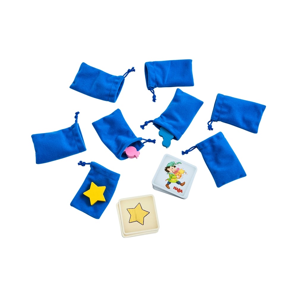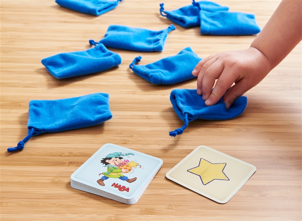 いたずら好きな魔法使いが、部屋の中をこっそりと通りぬけておもちゃを隠しているのを見たことがあるひとはいませんか? さあ、なくしたおもちゃを取り戻す時間です カードに描かれたおもちゃを袋の上から触って一番早く見つけられたひとの勝ちです。 ●感覚スピードゲーム ●対象年齢:3歳くらい~ ●参加人数:2~4人 ●所要時間:約5~10分