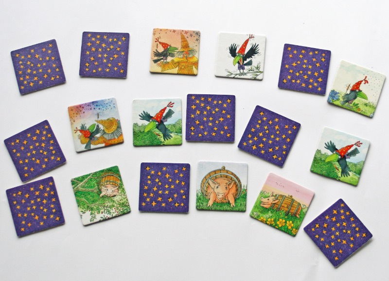魔法を使うカラスの絵本が元になった、ちょっとかわった絵合わせ(神経衰弱)ゲームです。