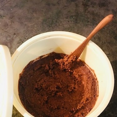 念願の手作り味噌を昨年3月にはじめて仕込みました。材料は、やさか有機大豆、やさか有機麦こうじ、シママースの塩。 野菜市場のスタッフに麹の種類や仕込み量、作り方を相談しました。約10ヶ月寝かせて、1月末に仕上がりを確認しました。麦麹のやさしい色と香りにうっとり。早速、味噌の焼き菓子を作りました。芳醇な香りが最高! 手前みそ仕込み、今年も楽しみです。(東京店レストラン Y)