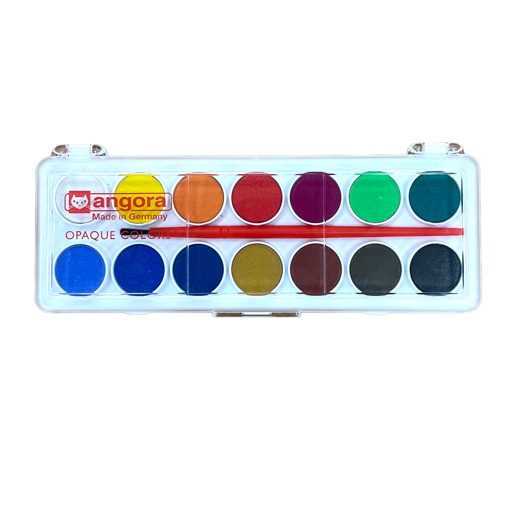 ドイツ製の水彩絵の具14色、パレット入り、筆つき。