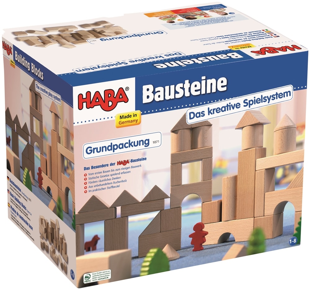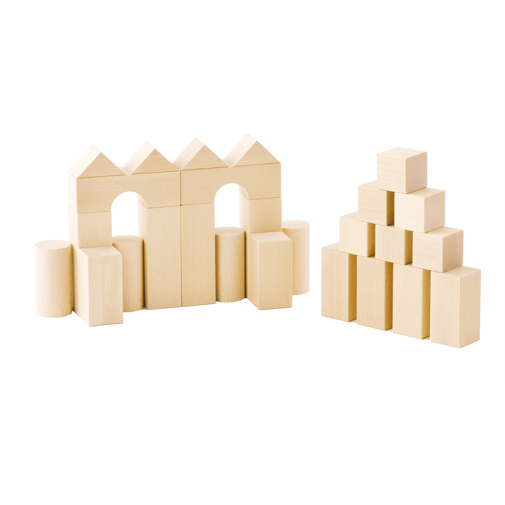 スターターセット小は、小さい子があそびやすい立方体、直方体、円柱といった基本的な形のパーツで構成されています。 「つかむ」「放す」「積む」といった、基本的な動作を交えてあそぶのにぴったり。