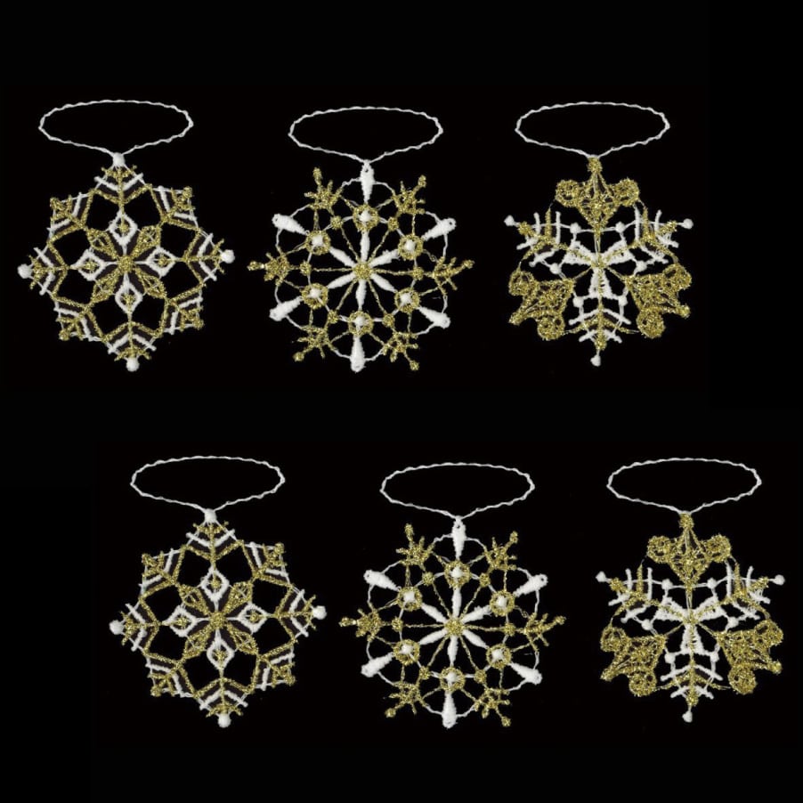 ゴールドと白糸のコンビネーションが美しく、クリスマスツリーを品よくまとめてくれる小ぶりなオーナメント。