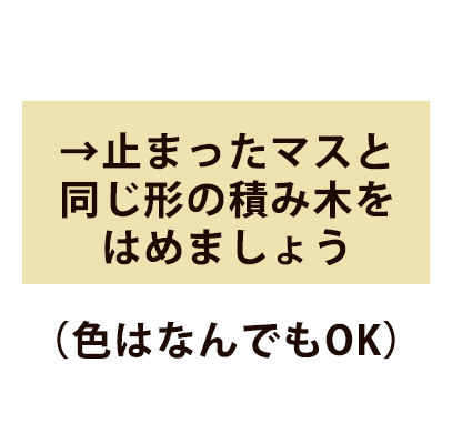 色やかたちに興味が出てきたら、ぜひチャレンジしてもらいたい協力型ゲームです。 サイコロをふり、かめさんを動かして、止まったマスの色か形に対応した積み木を枠にはめます。 間違えてしまうと、かめさんの涙チップがたまってしまいます。涙が3つ、こぼれる前にみんなで積み木を全てはめこみましょう。 ●絵合わせゲーム ●対象年齢:2歳くらい~ ●参加人数:1~3人 ●所要時間:約5~10分