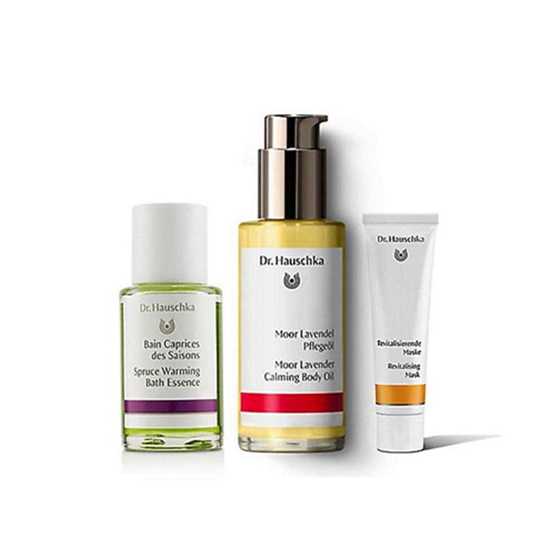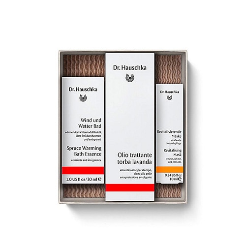 ホリーデーシーズンの贈りものに 冬の特別なひとときを彩る冬季限定のバスエッセンス 〈スプルース> と、心をゆるめる香 りのカーミングボディオイル 〈ムアラベンダー〉、さらに肌を健やかに整えるリバイタライ ジングマスクを詰め合わせました。 やさしい香りとケアで、身も心もあたたまるひとときをお届けします。 大切な方へのギフトにも、自分へのご褒美にもぴったりの特別なセットです。