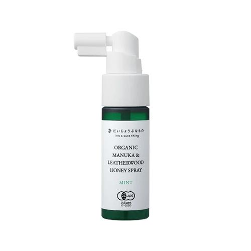 百年はちみつ液体のど飴スプレー(マヌカ&レザーウッドハニースプレー) いつでもどこでも、どなたでも。 毎日美味しくシュッとして、健やかな毎日を。 健やかな毎日を保つには毎日のケアが大切。 季節の変わり目など、からだの調子が気になるときに。 オーガニックでやさしく健康ケアが効果的です。 マヌカハニー、レザーウッドハニーとカミツレエキスをキー成分に、効果を追求して厳選された植物成分をブレンドしました。 男性にも人気の、すっきりとしたミント味です。 小さなお子さま(2歳以上)や胎児の健康を想う妊婦さんでも安心して毎日ケアをしていただけます。