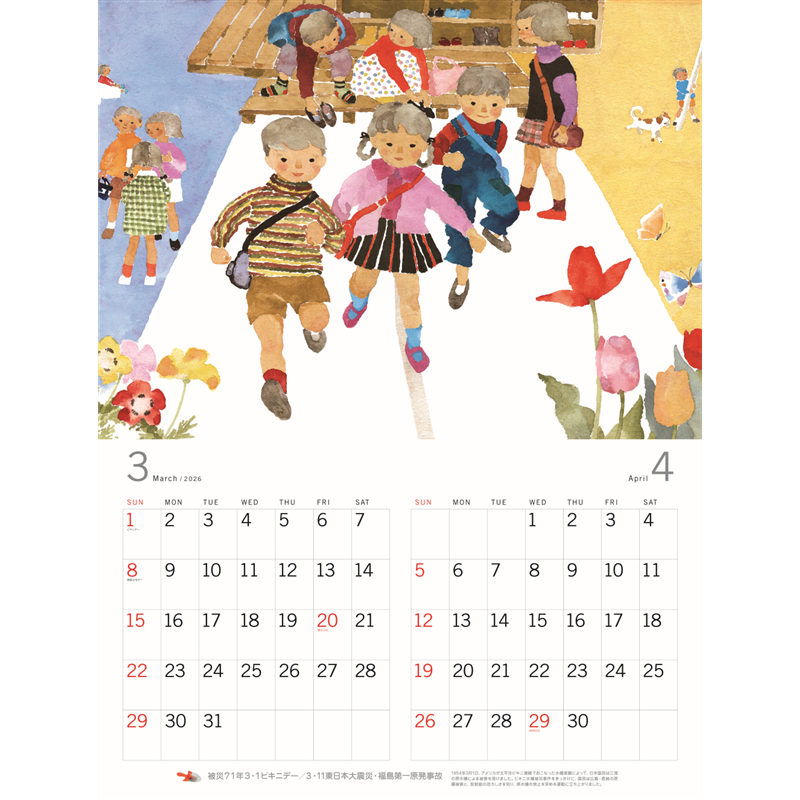 カレンダーとしてお使いいただいた後、切り取って額絵としても飾れるよう、上質な紙を使用してお作りしています。