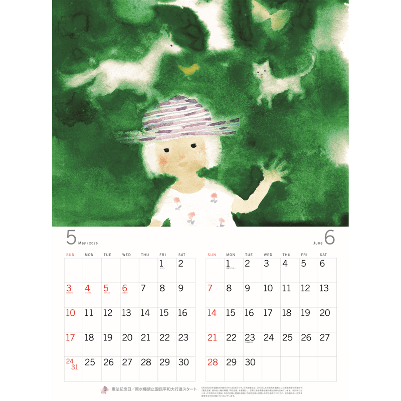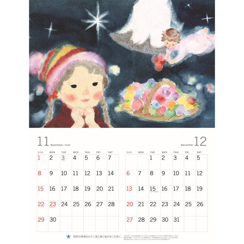 2024年8月、至光社よりいわさきちひろの絵画32点が新たに発見されました。 その中から、初めて商品化される珠玉の2点を厳選し、特別なカレンダーに収めました。