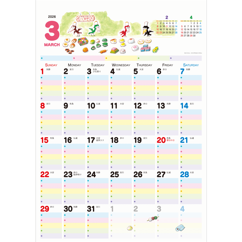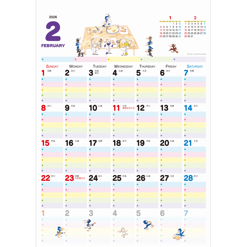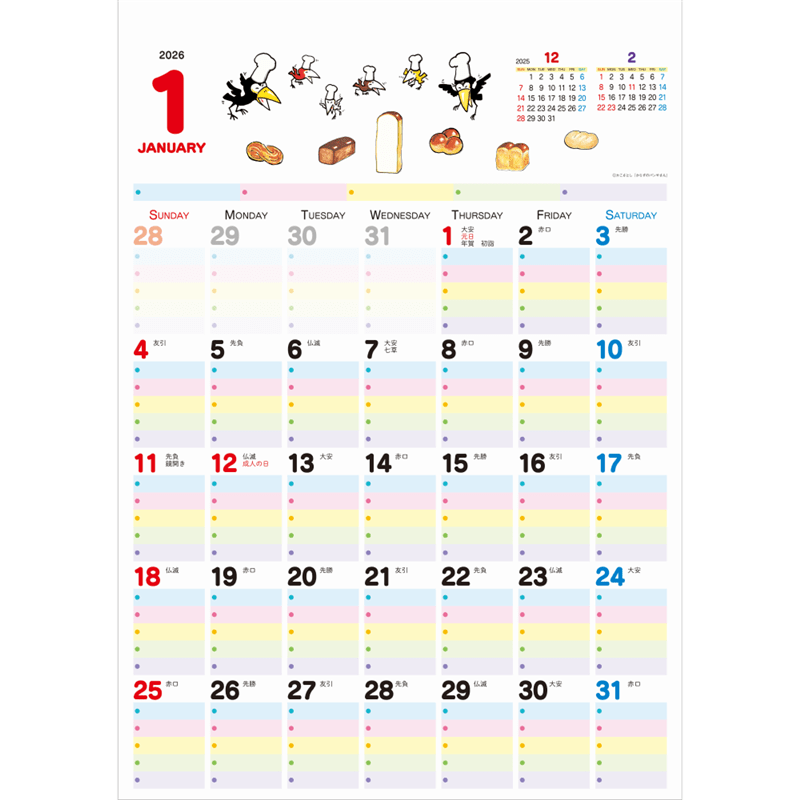 からすのパンやさん一家 ファミリーカレンダー 2026