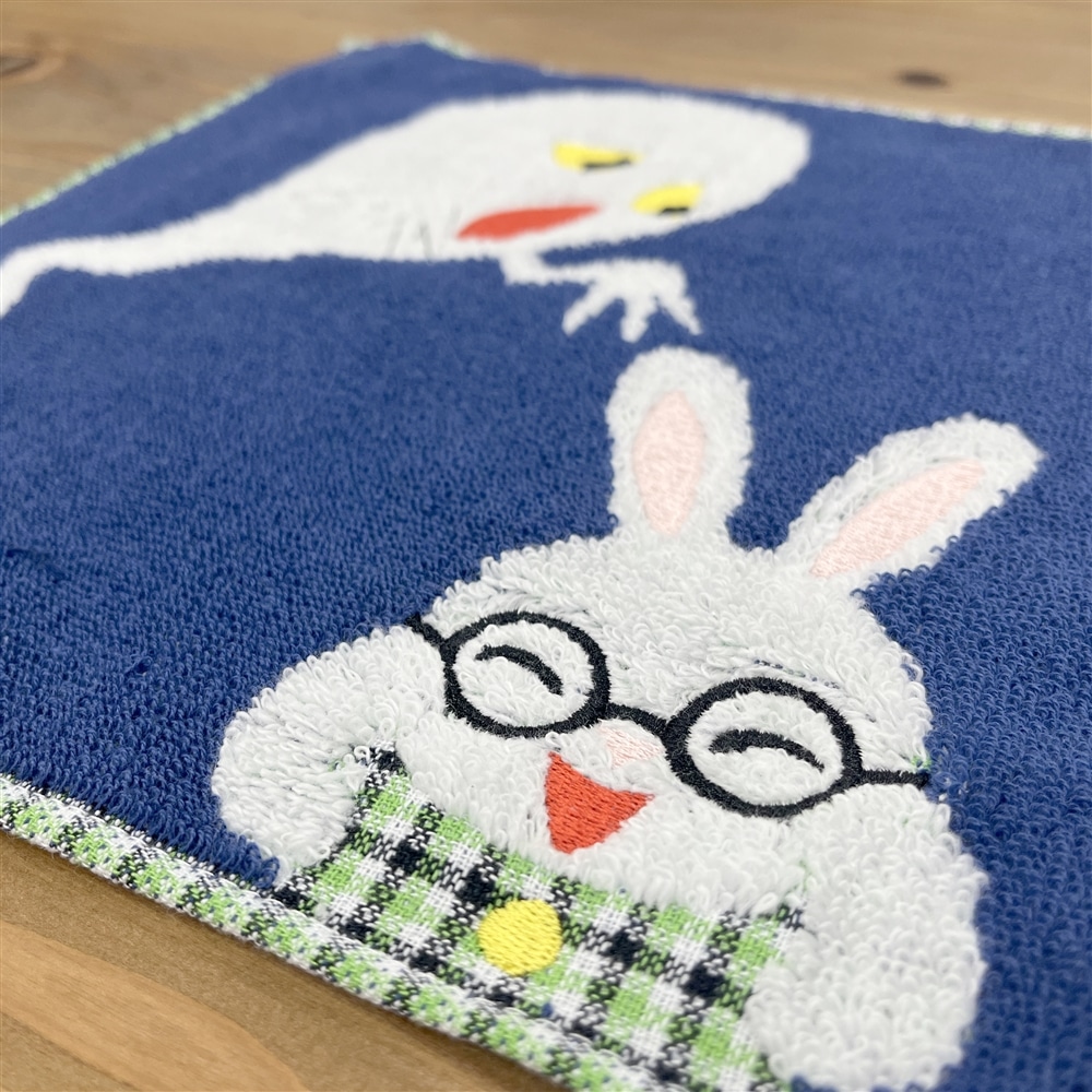 『めがねうさぎプチタオル』を2点お買い上げくださったお客さま。ほんとは違う柄のものを買いたいんだけど、5歳と7歳の女の子のきょうだいに差しあげるとのことで、「違うものをあげちゃうと、かならずケンカがはじまっちゃうから…」と苦笑いしながら教えてくださいました。 (東京店子どもの本売り場 I)