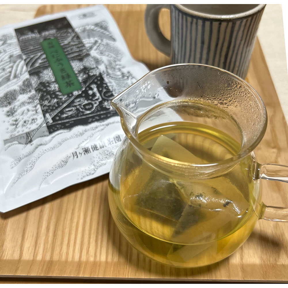 ハーブティーのように熱湯で5分ほど蒸らすと、すっきりした味わいの緑茶に。5分煮出すと濃く抽出され、すこし苦味もある味わいに。朝、多めに煮出して1カップをいただき、残りは外出用に常温で携帯しています。緑茶はあたたかいまま保温ボトルに入れると、味が変わってしまうので要注意。(東京店スタッフ H)