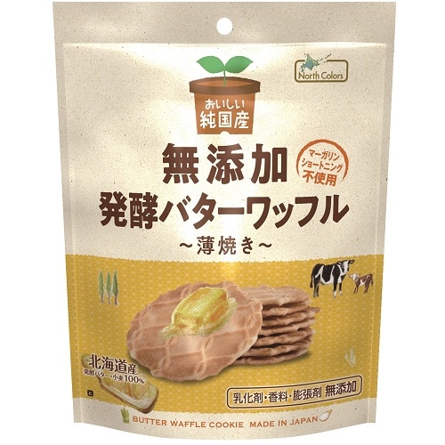 サクサクでうす~い あとひくおいしさ ショートニングやマーガリンを使わず、醗酵バターの風味を際立たせた薄焼きワッフルです。 そのまま食べてももちろん美味しいですが、アイスクリームを挟んでちょっと贅沢に。 あんこや蒸し芋をのせたり、砕いてヨーグルトにプラスするなどアレンジ自由自在のワッフル。 あっという間になくなってしまう、リピートまちがいなしのおいしさです。(大阪店野菜市場・T)