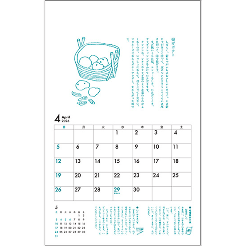 1952~78年の『暮しの手帖』に掲載されたカット画と1954年から続く連載『エプロンメモ』から、 暮らしのアイデアを掲載した小型のカレンダーです。