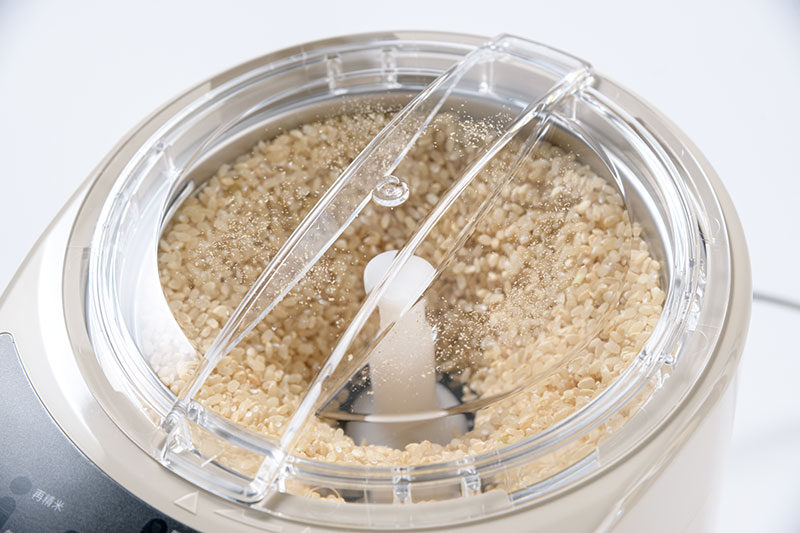 お米を傷付けないていねい仕上げで、玄米5合を2分30秒で白米に!