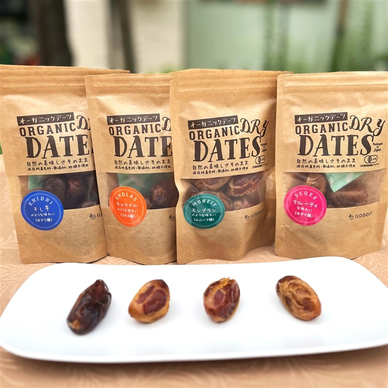 中東地域で古くから親しまれるデーツ(なつめやし)は、栄養豊富、自然な甘みで日本でも注目が高まっています。 デーツの産地、サウジアラビアの伝統ある農園の有機デーツ4種は、砂糖も保存料や着色料も、すべて無添加のプレミアムなドライフルーツです。 輸入元のilodoly(いろどり)社は、この農園のデーツの味にほれ込んで、日本で販売すべく有機JAS認証を取得。日本での小分け・パッケージ化は障がい者就業支援を行う社会福祉法人に委託しています。