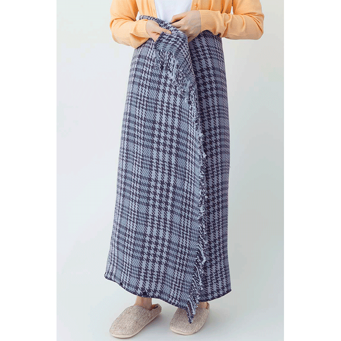 よこ幅160センチのワイドサイズ、綿100%のやわらかな素材が、ゆったりとカラダを包み込みます。肩から羽織ったり、スカートのように腰に巻いたりとアレンジも自由。上半身に羽織ってスナップボタンを留めれば、あったかショールとしてもお使いいただけます。暖めるための熱線が入っているのにとても軽量、肩がこることもありません。
