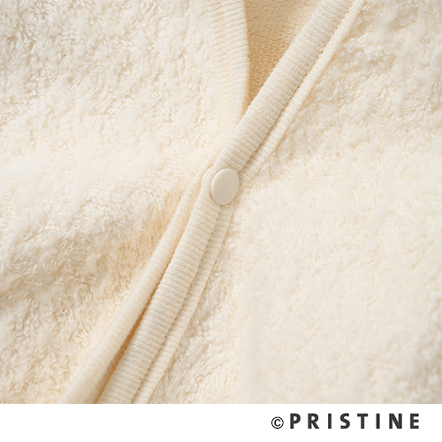 生まれたてのあかちゃんから、プールや海でもお使いできるように前にプランサーを付けて羽織れる仕様にしています。