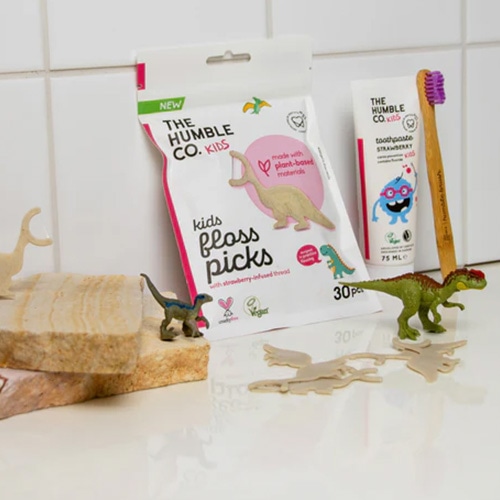 歯科医の指導・監督のもと製造された、スウェーデン生まれのデンタルフロスピック。 フロスピックのハンドルは、植物由来素材とポリプロピレンのミックス素材を使用。 石油由来原料の使用量を50%削減しています。 フロスの糸は、滑らかで丈夫、破れにくいポリエチレン製で、エッジは丸みを帯びています。 恐竜のかたちのハンドルといちごフレーバーは、子どもが楽しくフロス使用を習慣づけられるように設計されています。 洗って繰り返し使えます。30個入り。 *ご使用の目安:3歳~11歳頃まで