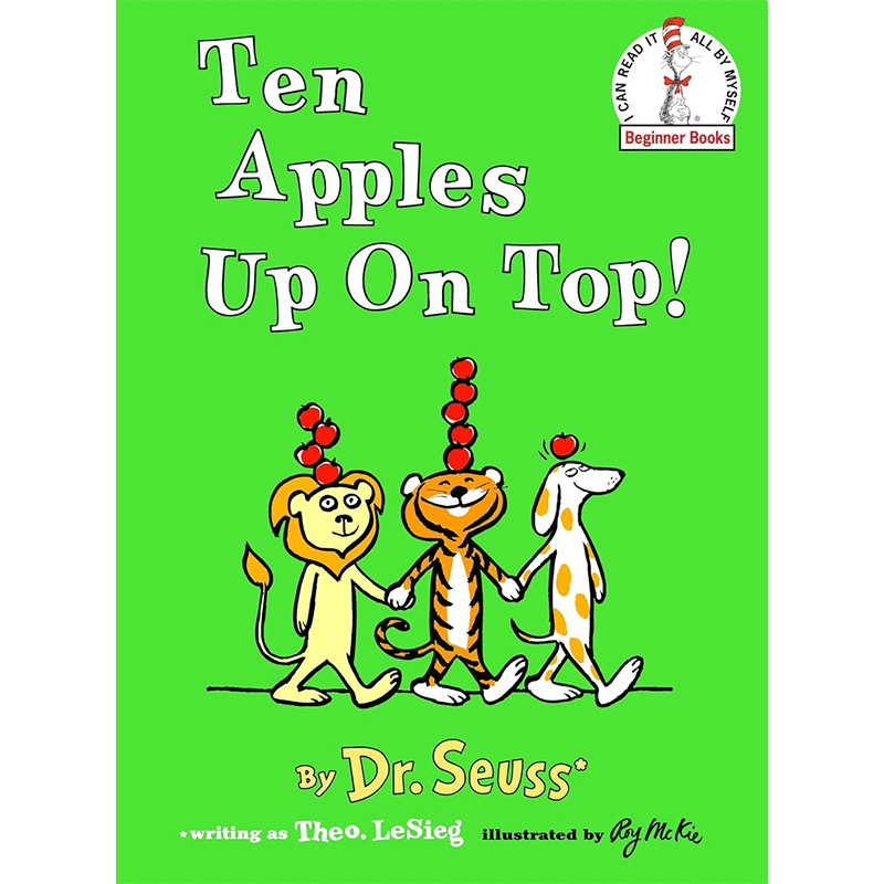 ひょうきんなライオンが、自分の頭にリンゴをのせて器用に歩けることを自慢します。 するとイヌもできると言い、2匹の技が次第にエスカレートしていきます。 そのうちトラも加わって、頭上のリンゴが10個になったところで、モップをふりまわして怒るクマが登場! 状況が一変します……。
