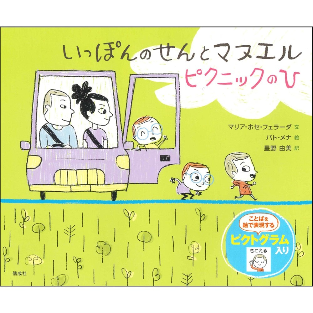 外の世界に関心をいただきはじめた男の子、マヌエルは今日は家族とピクニックへ。 気持ちいいなあ。生きものはいっぱいだし、花を眺めたり、風を感じたり、なんて素敵な時間だろう。 自然とふれあうマヌエルには、新鮮な喜びと驚きが。 作者がひとりの自閉症の男の子と出会ったことで、生まれた絵本。 言葉の意味を簡単な絵で表現したピクトグラム付き。