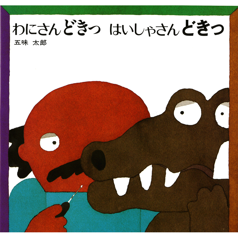 むし歯が痛み、歯医者さんにやって来たわにさん。歯医者さんの持つ道具を見て「どきっ」。一方、歯医者さんは、患者さんが鋭い牙のわにさんなので「どきっ」。おたがいに「こわいなあ……」「でも がんばるぞ」と覚悟を決めて治療がはじまります。ちがう立場のふたりが、同じ場面で発する同じセリフの数々。ユーモアとウィットに富んだ名作。