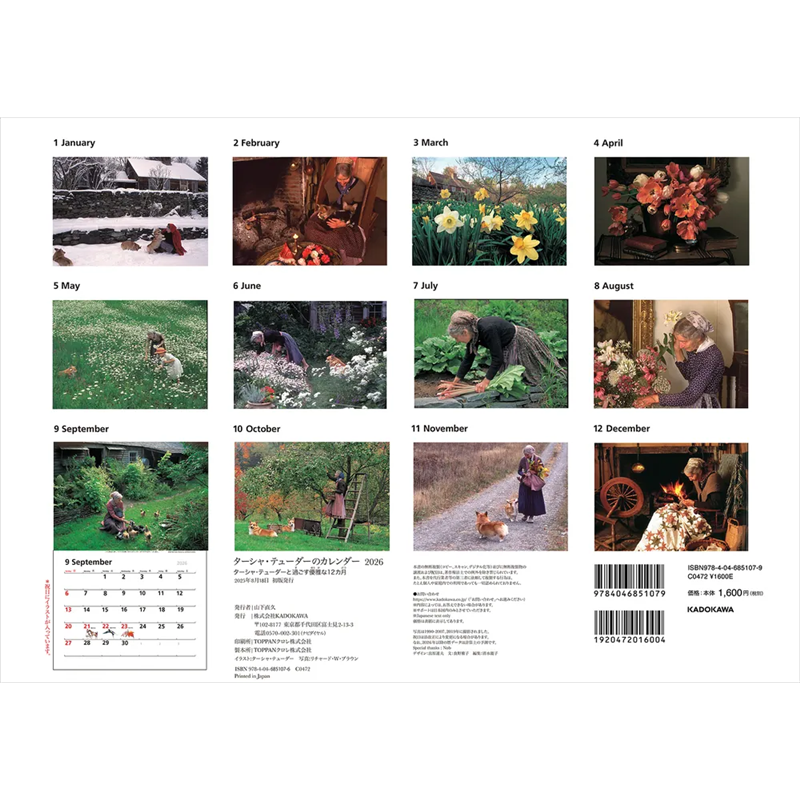 毎年好評のターシャ・テューダーのカレンダー。2026 年版で20 周年になります! 2008 年6月、92 年の人生の幕を閉じたターシャの素晴らしいガーデンとそのライフスタイルは、今も多くの人たちの憧れ。