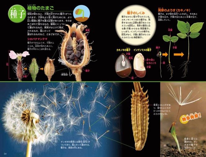 植物早見表 植物の構造もしっかり学べる! 種子のしくみ 季節ごとの身近な草花ページも!
