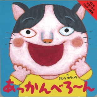 「あっかん」でページを持って引っ張ると…… 「べろ~ん」と顔が長~く伸びて、おもしろい顔に変わります。