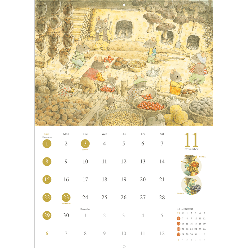3世代にもわたって愛されるロングセラー絵本「14ひきのシリーズ」のカレンダー。四季折々の14ひきたちの生活、森のうつりかわりを描いた色彩豊かな絵が、大画面で楽しめます。「カレンダーシール」つきで、家族のイベントを楽しく書き込めます。