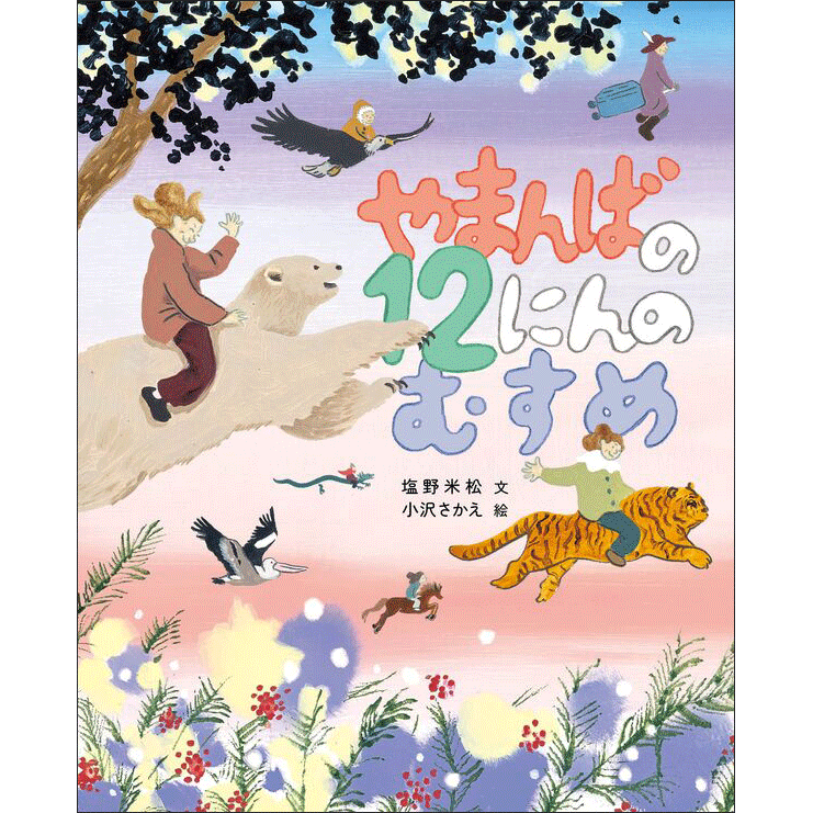 北の山奥に暮らしているやまんばのもとに、 12年にいちど、12月12日に12人のやまんばのむすめたちが帰ってきます。 むすめたちはそれぞれ、ワシやシロクマ、竜の背に乗って空を飛び、 おかあさんのもとへ帰って来るのです。 一方、娘たちを迎える山では、やまんばと山の生きものたちが、 鍋をかきまぜ、餅をつき、寝床をつくってお待ちかね。 さあ、宴のはじまりです! 作家のかたわら、失われゆく伝統文化や技術の記録に 取り組んでおられる塩野米松さんによる、山の神さまの物語。 小沢さかえさんが描く、いきいきとした生きものたちのすがたも魅力的です。