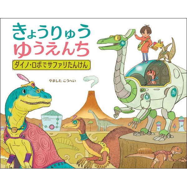 「きょうりゅうゆうえんち」は恐竜だらけのふしぎな遊園地。そこにオープンした新エリア「ダイノ・サファリ」に招待された少年が、サファリを探検するお話です。恐竜型マシン「ダイノ・ロボ」に乗ってさまざまな恐竜たちに出会い、相手を思いやることの大切さにも気づいていくというあたたかなストーリー。100種類以上の恐竜と大昔の生き物が登場し、縮尺もリアルに表現した絵は必見です。