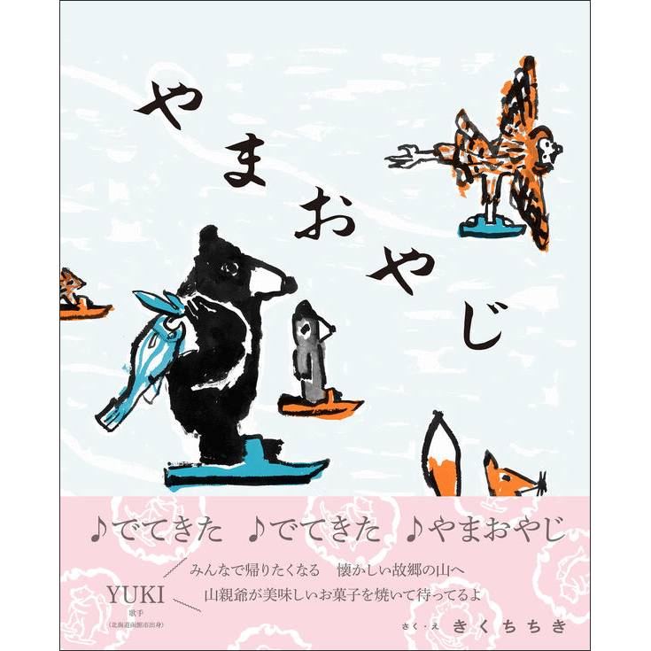 北海道の雪山に住んでいる、くまの「やまおやじ」。 こぐまと鮭をとるためにスキーで山を下り、 川へ向かいます。 くまの親子がスキーで登場する北海道の銘菓「山親爺」の マーシャルを絵本にしたら……というアイデアから企画が スタートしたという本作。 CMソングのフレーズも用いたリズミカルなことばにのせて北海道出身、絵本作家のきくちちきさんが 鮮やかな配色でダイナミックに、描きます。 「山親爺」の解説などが掲載された「絵本 やまおやじのしおり」付き。