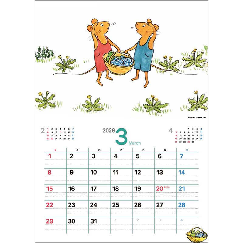 「ぐりとぐら」特製シールのおまけつき! シンプルで使いやすい、毎年人気のカレンダーです。