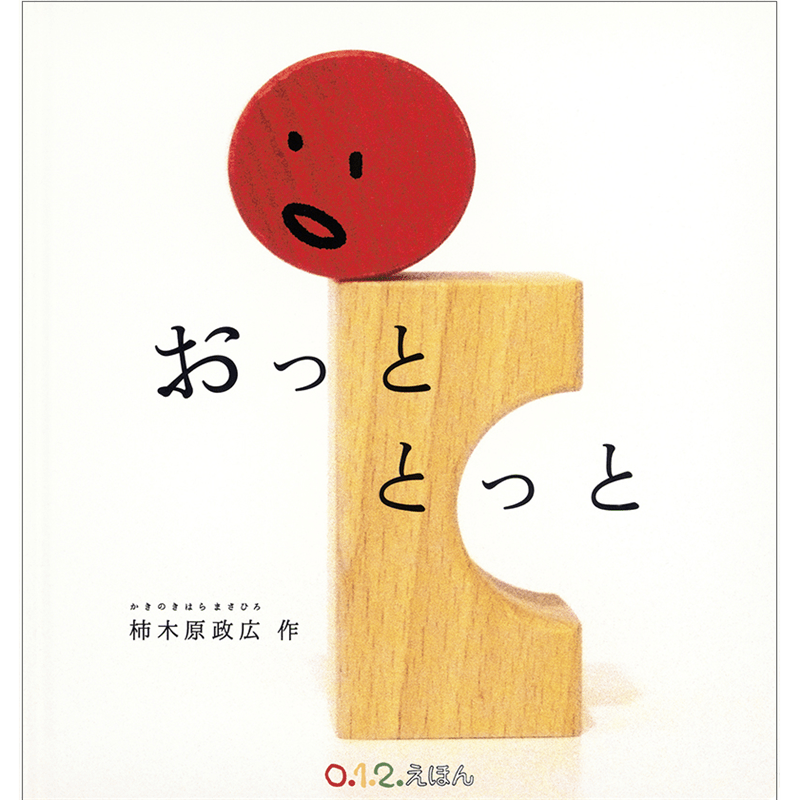 四角い積み木の上に、丸い積み木。ページをめくると、積み木がバランスを崩して「おっととっと」と転がったり崩れたりします。
