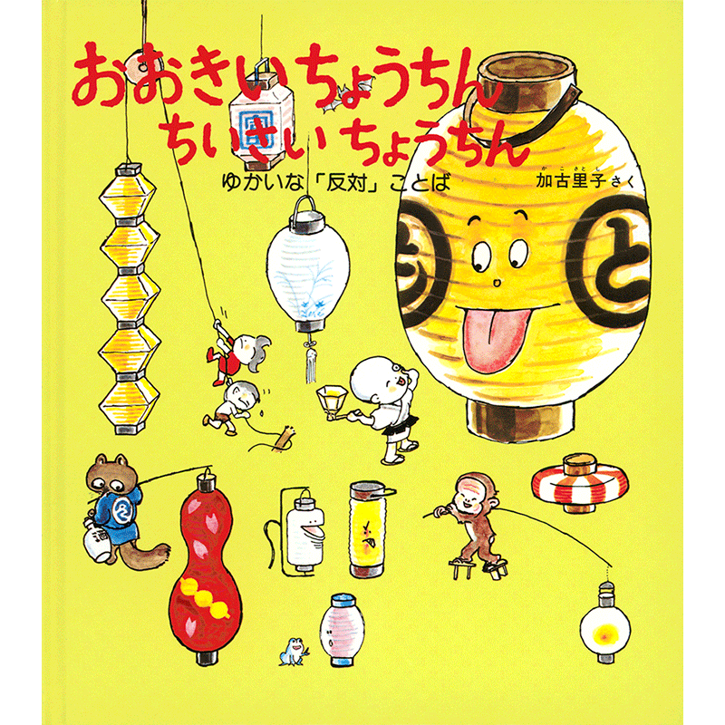 「おおきい・ちいさい」、「たかい・ひくい」、「あける・しめる」など、1ページにつき一組の反対言葉と、その言葉をあらわす絵が描かれています。 「つよい・よわい」では、力比べをするゾウと機関車、「やわらかい・かたい」では、ふかふかの布団で眠るブタと、石を枕にしているウミガメが対比で描かれていて、絵のおもしろさに「さすが!かこさとしさん!」とうなってしまうほど! タイトルに使われている「ちょうちん」がところどころに登場しているので、探してみてください。 言葉の意味を理解する、わくわくする気持ちが湧いてきます。