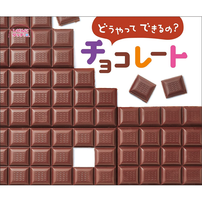 カカオ豆がチョコレートになるまでの過程を写真で紹介しています。 ふだんなかなか目にすることがない貴重な写真を眺めていると、よりいっそうチョコレートのとりこになることまちがいなし!? 折りたたまれたページを広げると、カカオがすこしずつチョコレートに近づいていく工程を見ることができるページなど、あそびごころもたのしい。