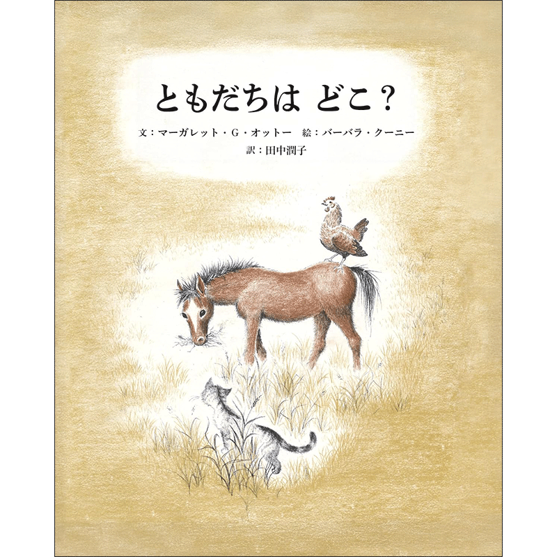 農場で暮らすこうまには、毎日一緒にあそぶ、ニワトリとネコの友だちがいます。 けれど今日は、いくら待っても友だちが家から出てきません。 それに、なんだか農場全体がとても静か。 寂しくなったこうまが、自分の小屋を抜け出してふたりに会いに行くと、すてきな出来事が待っていて……。 バーバラ・クーニーが、黒と茶色の濃淡のみで豊かに描いた、いのちの営みのおはなし。 農場の動物たちがくれたおくりものに驚き、喜ぶ、無垢なこうまのこころの動きが、読者にまっすぐ伝わってきます。