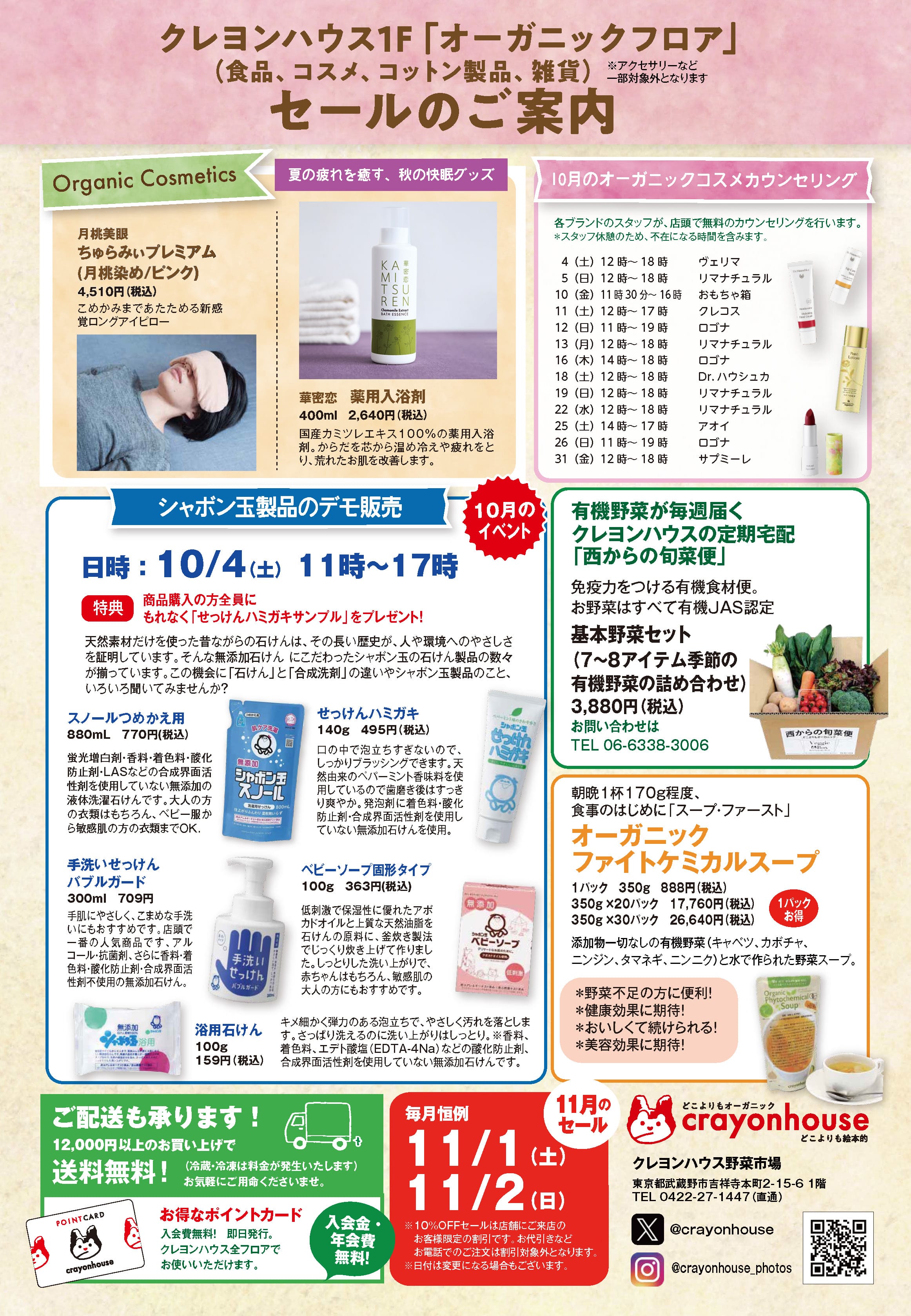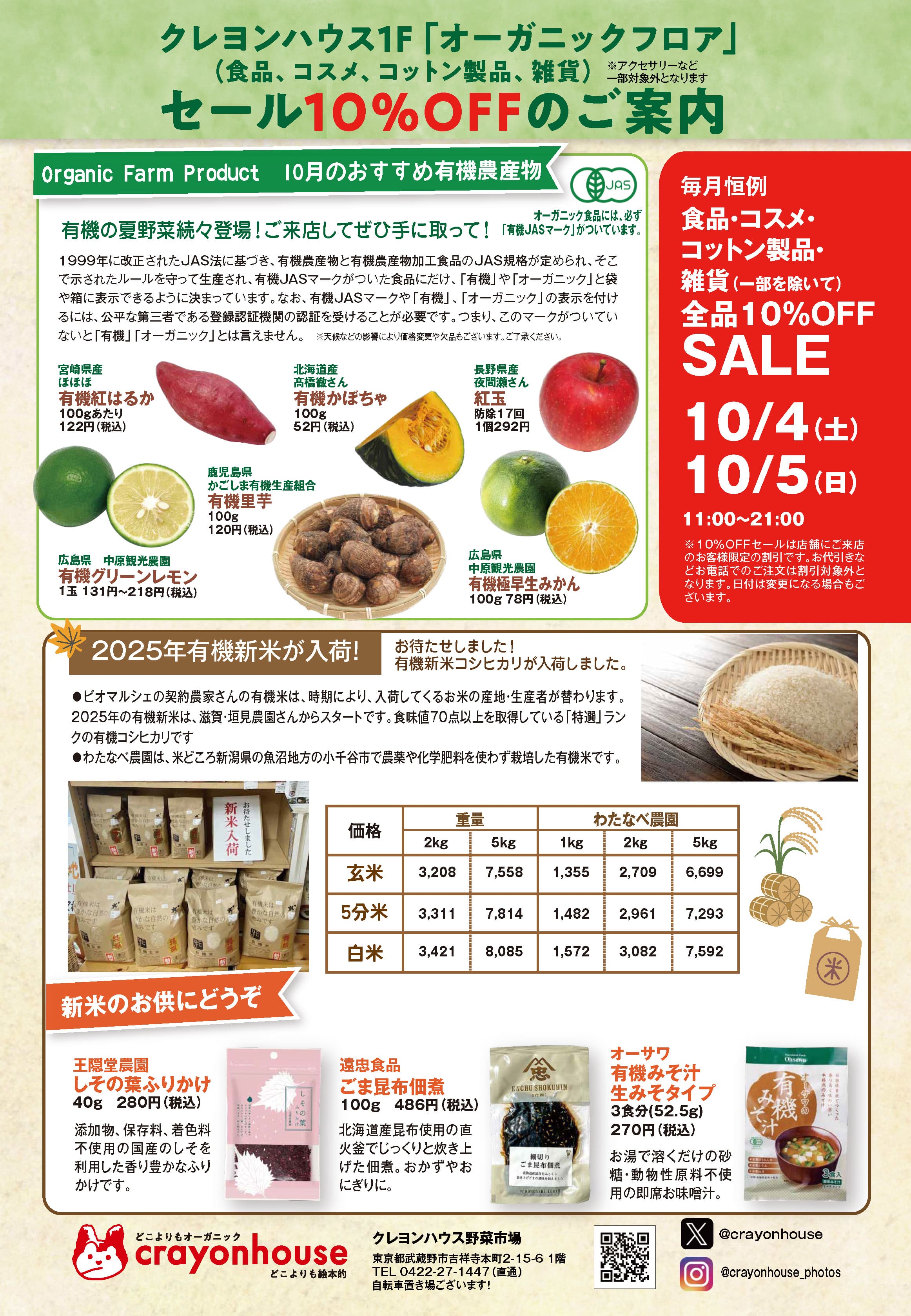 【東京】10/4(土)・5(日)はオーガニックフロア10%OFFセール!